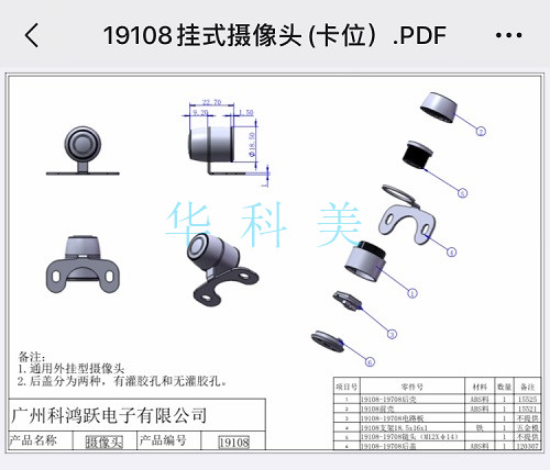 19108挂式(18外挂)、19708卡式(18打孔)摄像头...