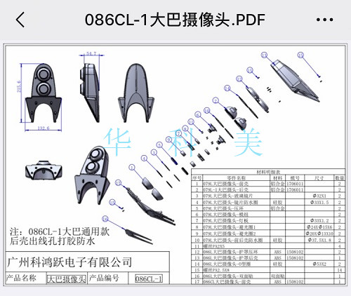 086CL -2大巴、货车(不带灯)通用款摄像头