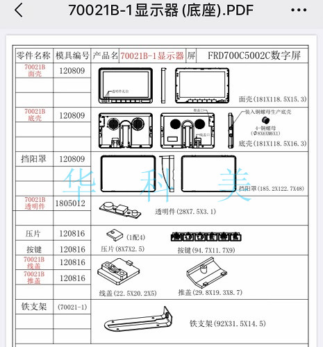 70021-3(7寸)后排头枕显示器外壳(正面)